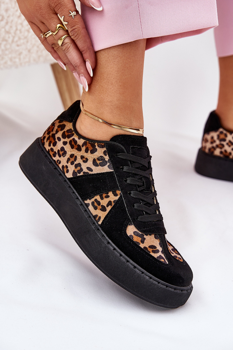 Sneakersy Damskie Z Panterką Na Platformie Czarne Nativira