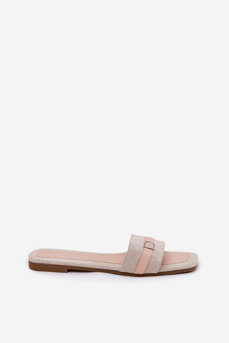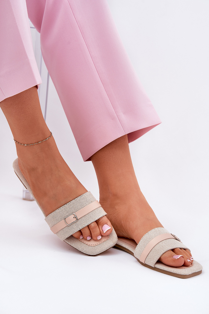 Płaskie Klapki Damskie Z Paskiem I Sprzączką Beżowe Zilina