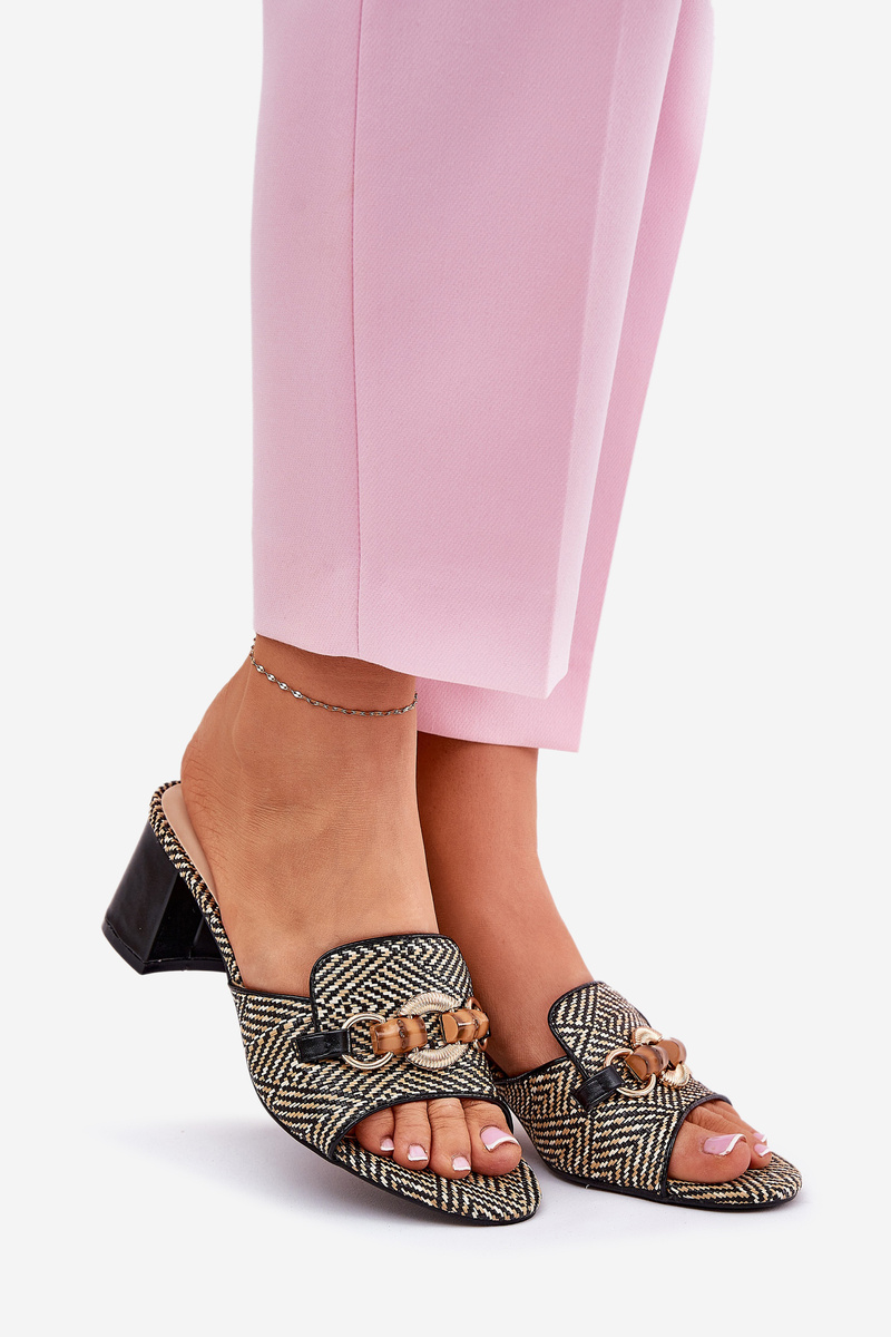 Klapki Damskie Na Obcasie Z Ozdobą Czarne Ovittole