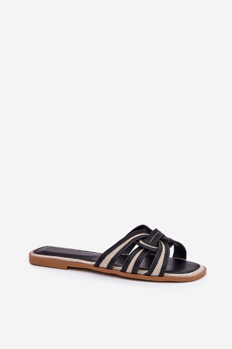 Klapki Damskie Płaskie Z Przeplatającymi Się Paskami Czarne Acimine