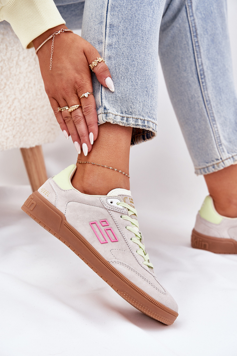 Zamszowe Buty Sportowe Sneakersy Damskie D.Franklin DFSH387005 Zgaszona Biel