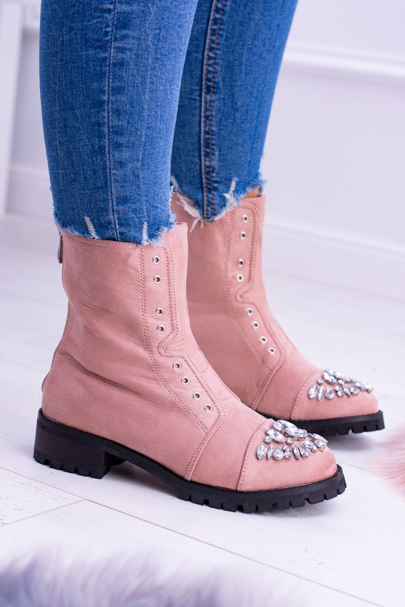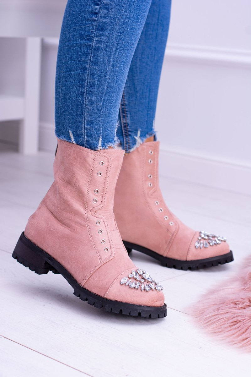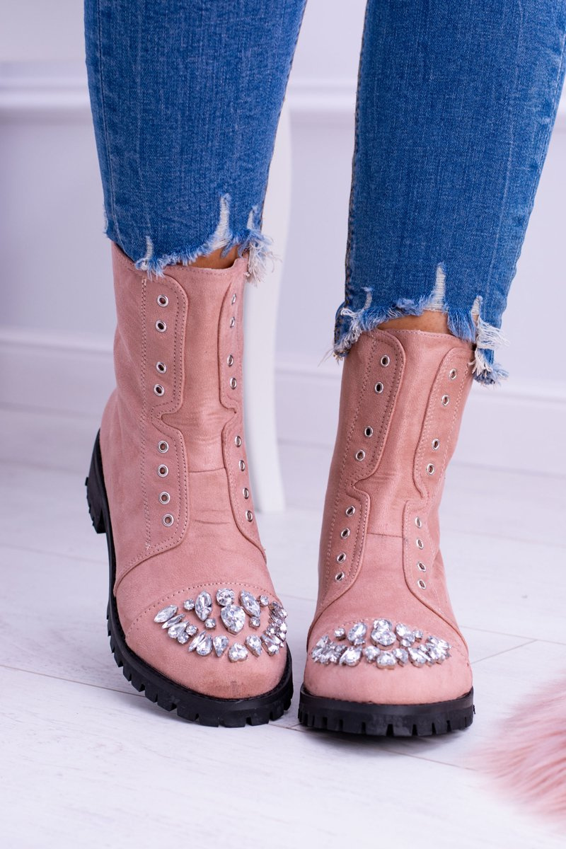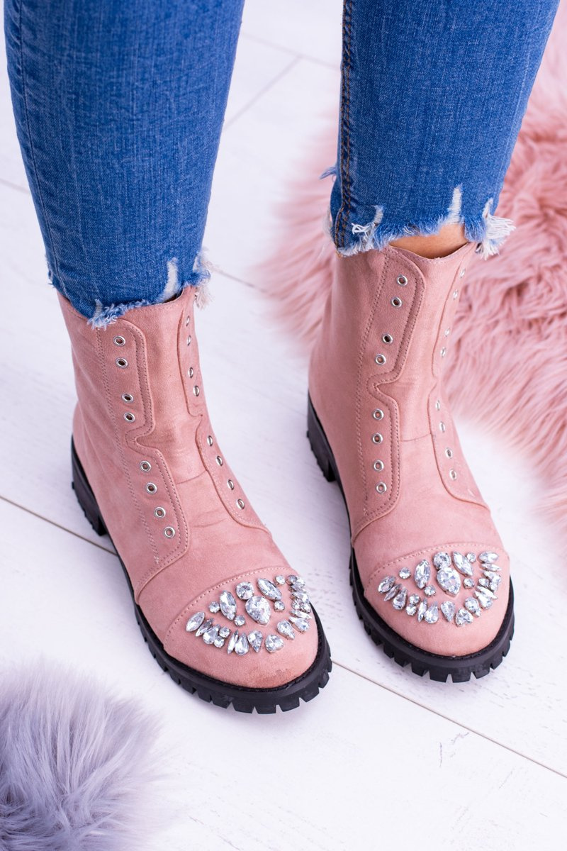 Lu Boo Damskie Botki Za Kostkę z Cyrkoniami Pudrowy Róż Carrie