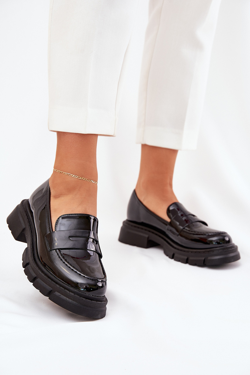 Mokasyny Damskie Lakierowane Czarne Elearionna