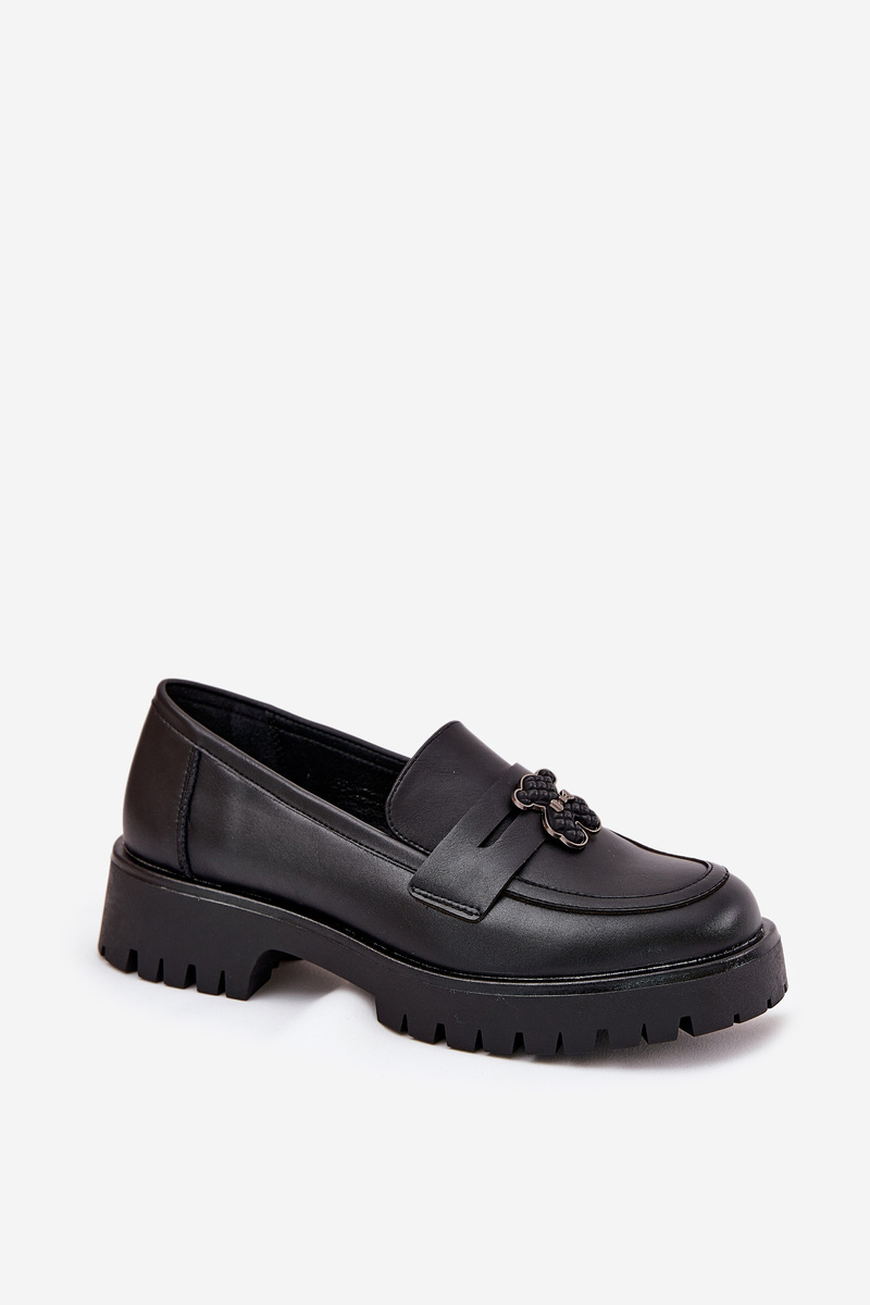 Skórzane Mokasyny Damskie Z Przypinką Miś Vinceza 18109 Czarne