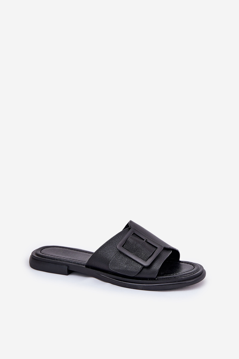 Skórzane Klapki Damskie Z Klamrą D&A SJ2302-01 Czarne