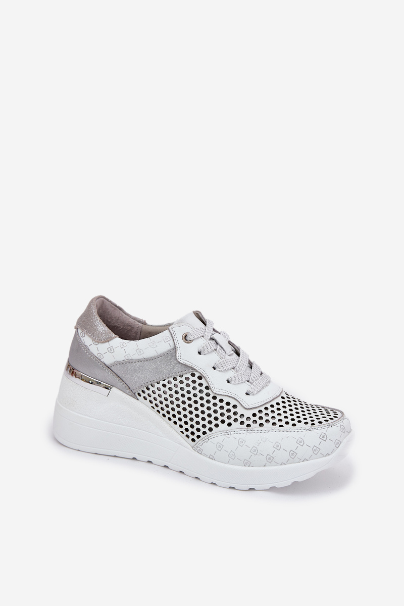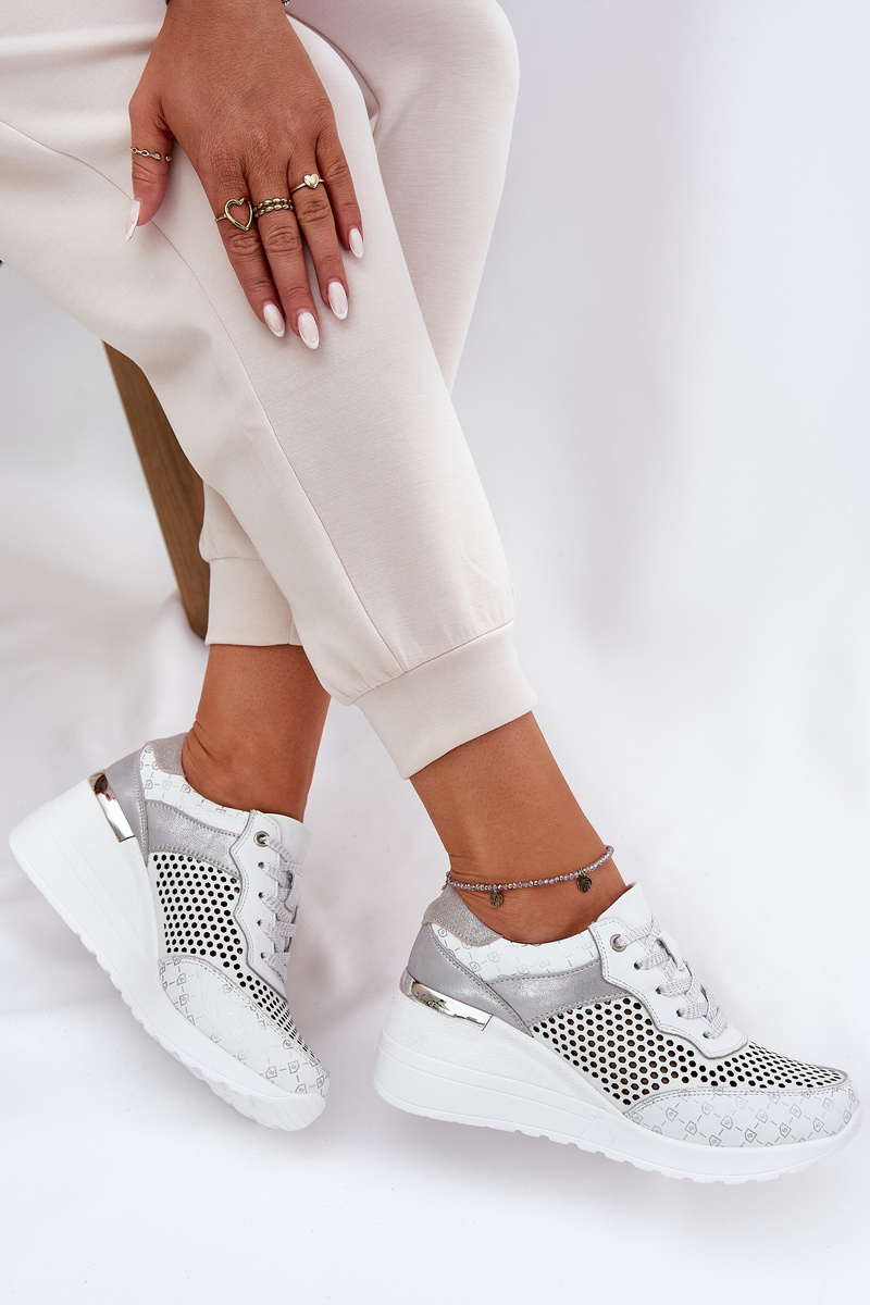 Skórzane Ażurowe Buty Sportowe Sneakersy Na Koturnie S.Barski LR51-641 Białe