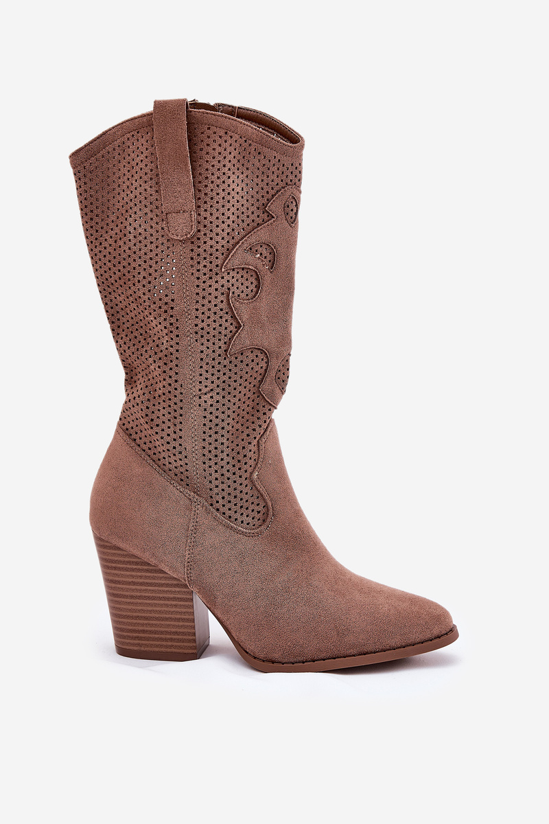 Ażurowe Kozaki Kowbojki Na Słupku S.Barski HY51-606 Brązowe