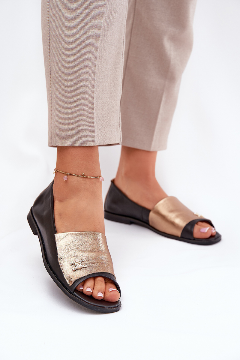 Skórzane Eleganckie Baleriny Z Odkrytymi Palcami Zazoo 1865 Złoto-Czarne