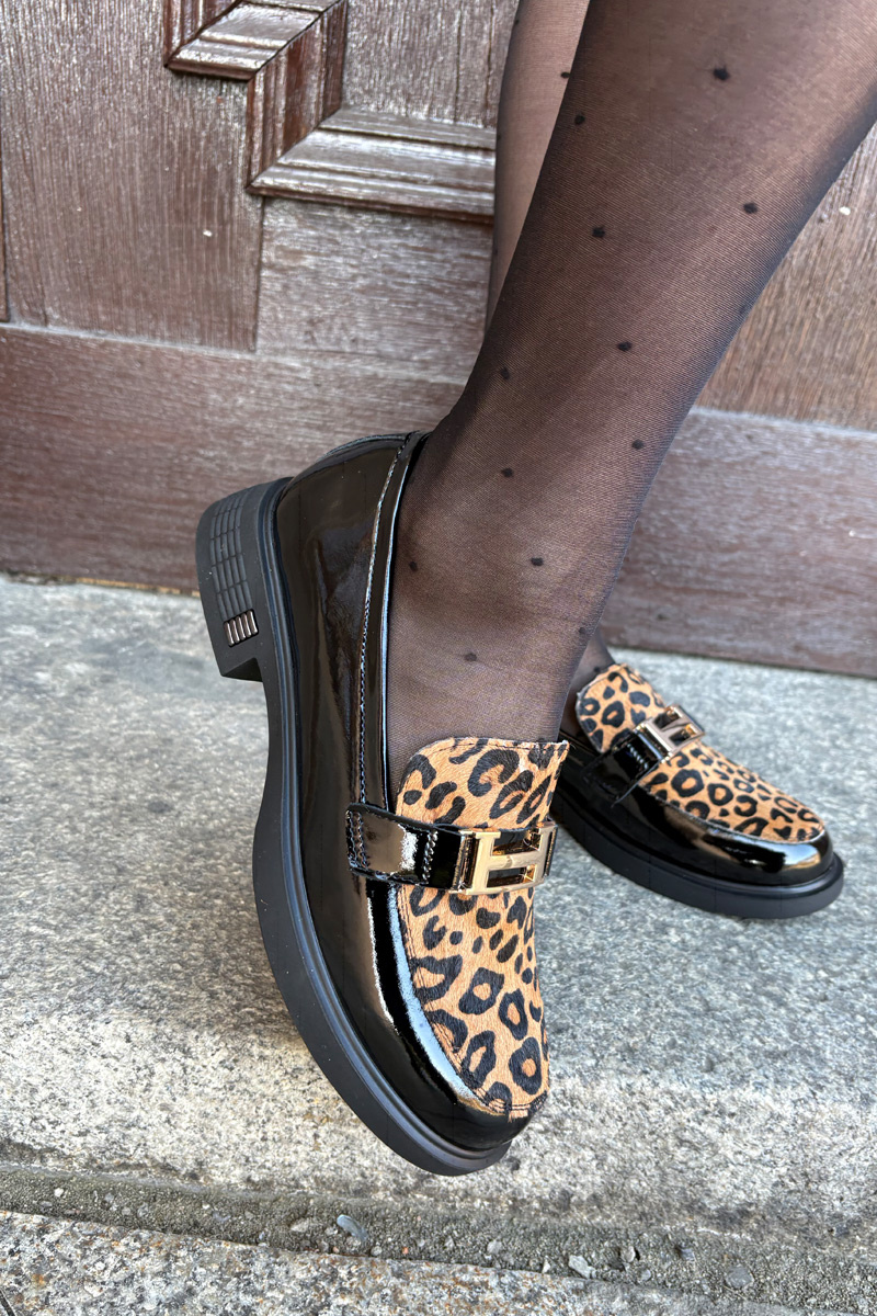 Skórzane Lakierowane Mokasyny Panterka Vinceza 66790 Czarne