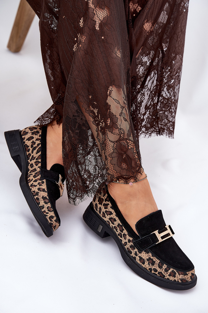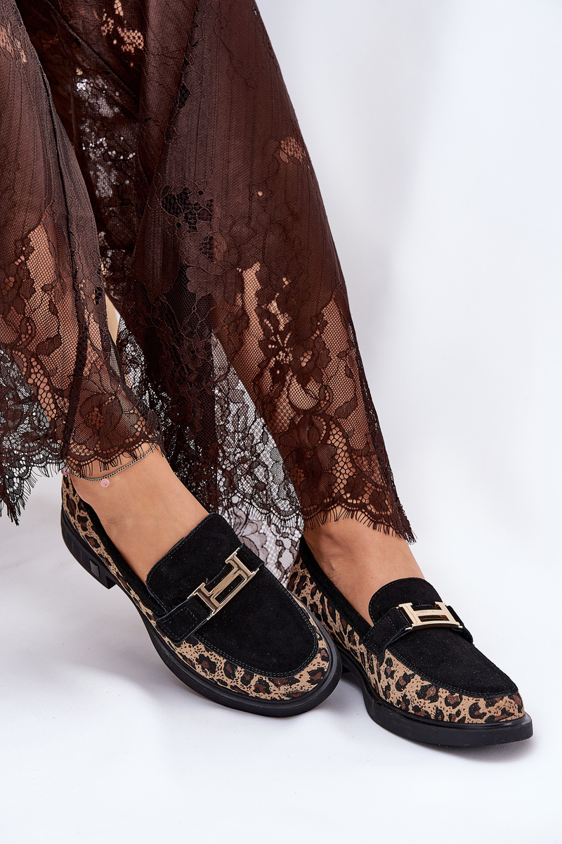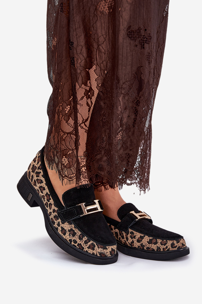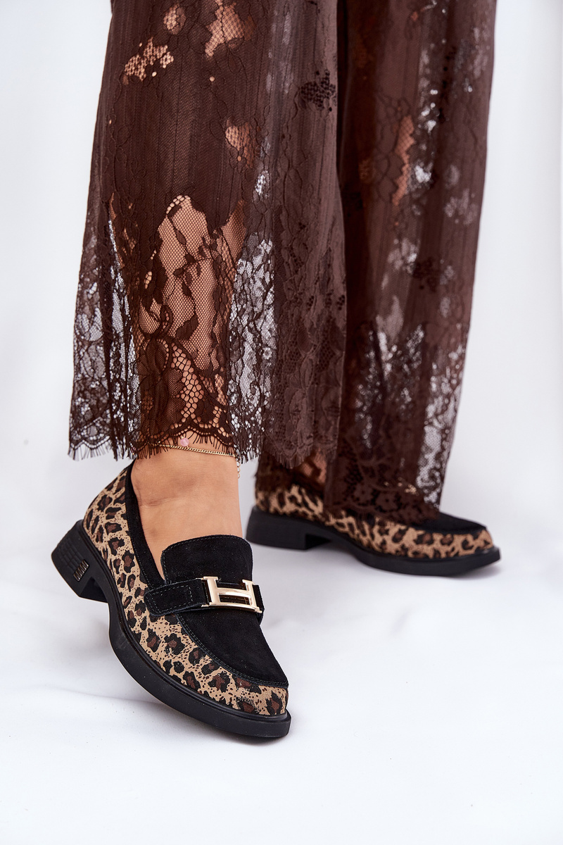 Zamszowe Mokasyny Damskie Panterka Vinceza 66791 Czarne