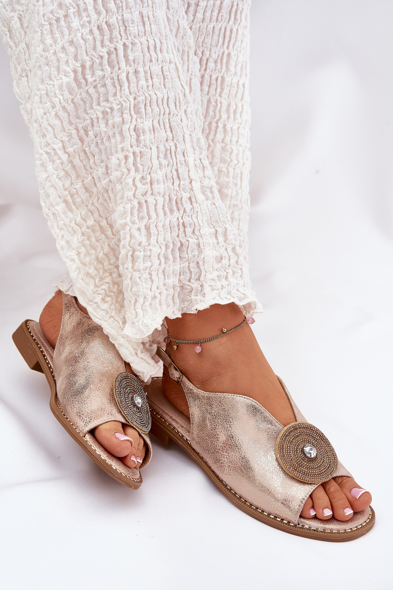 Połyskujące Sandały Damskie Ozdobnym Detalem S.Barski KV51-012 Różowe Złoto