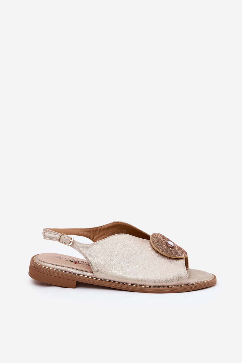 Połyskujące Sandały Damskie Ozdobnym Detalem S.Barski KV51-012 Złote