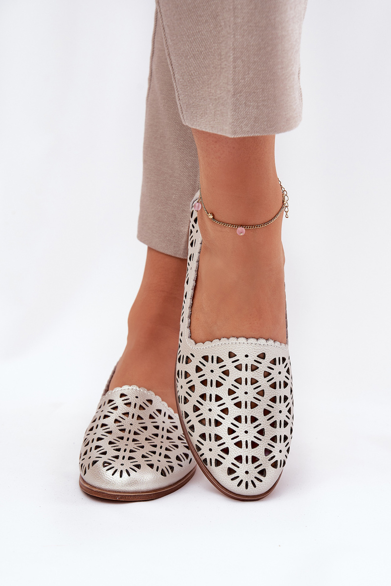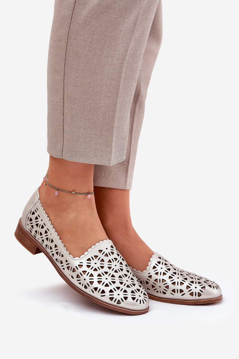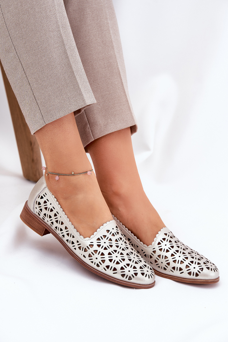 Skórzane Ażurowe Mokasyny Damskie S.Barski LR51-646 Złote