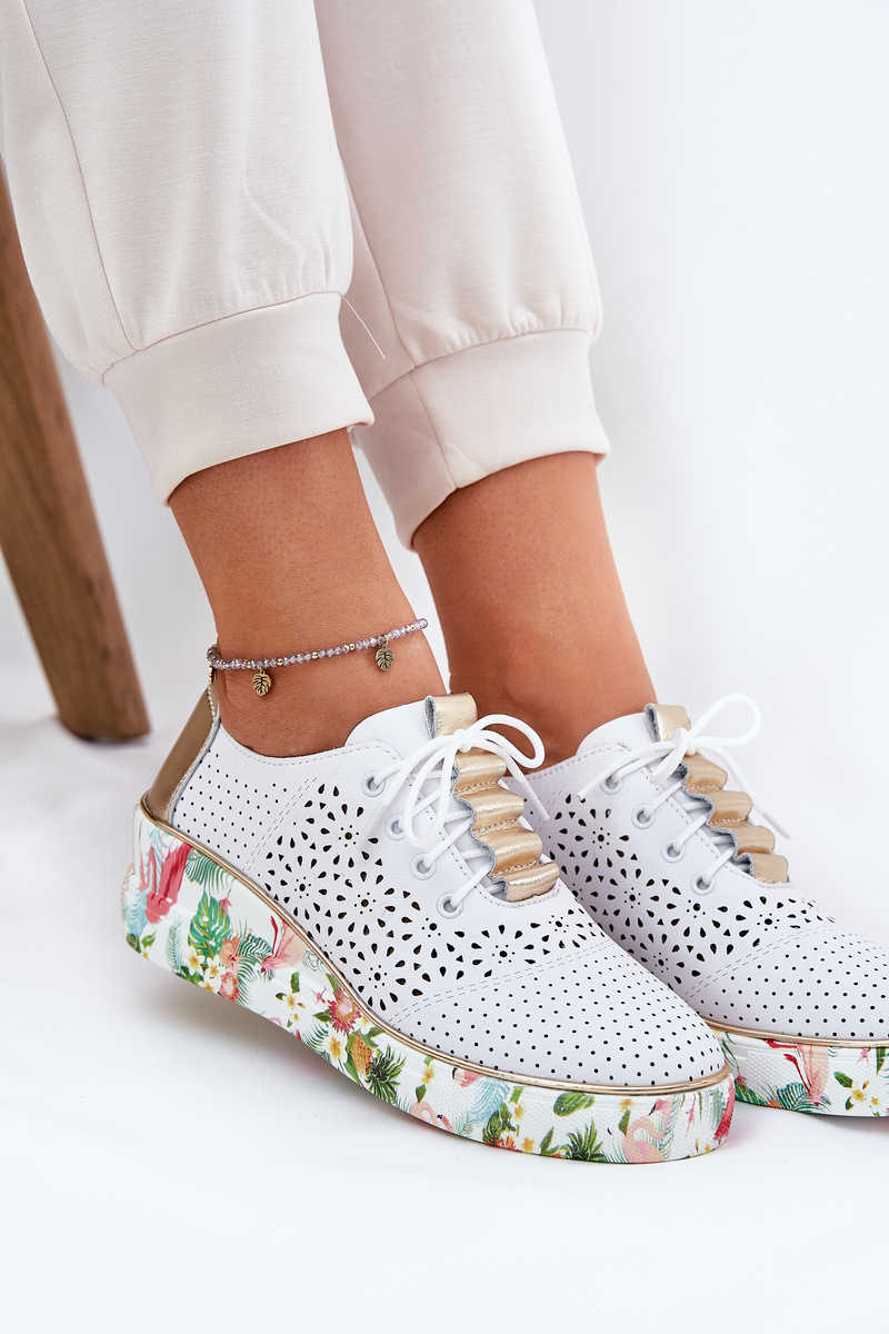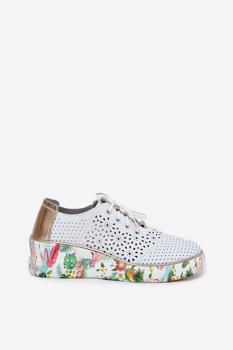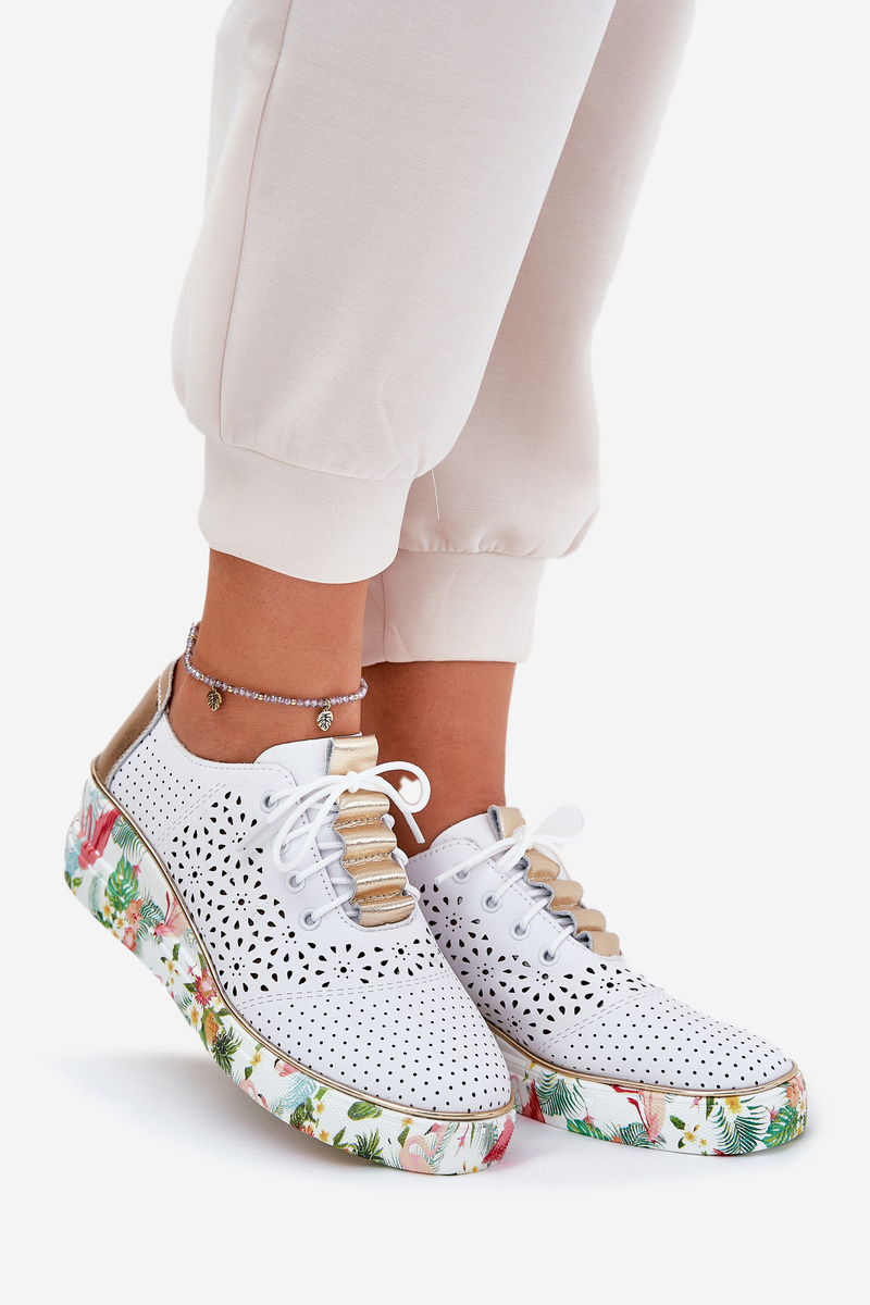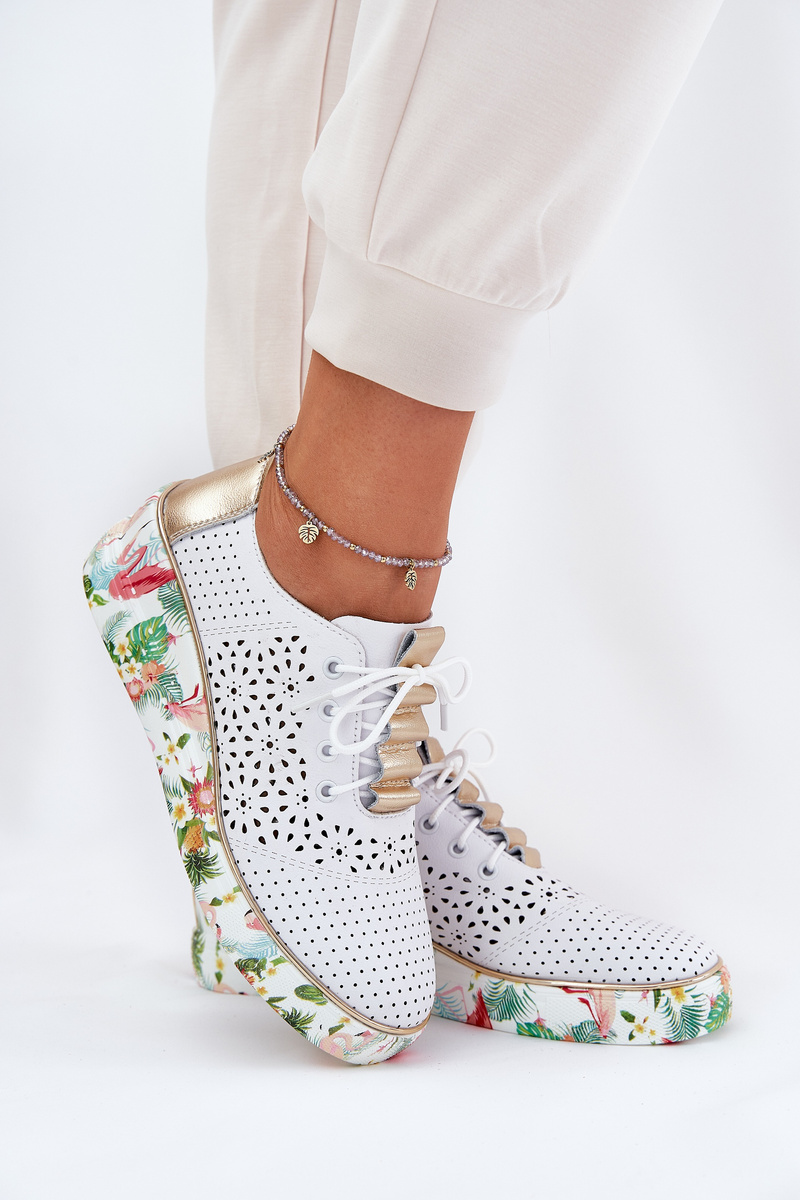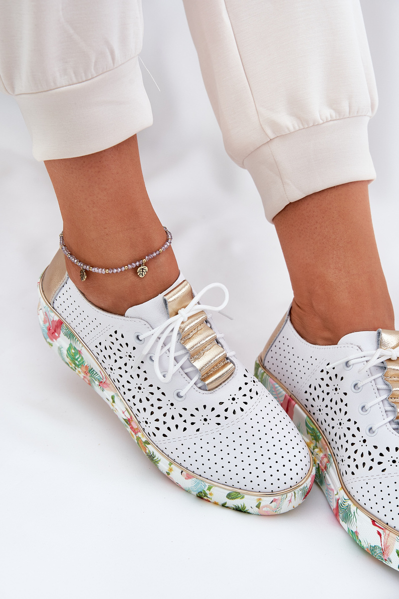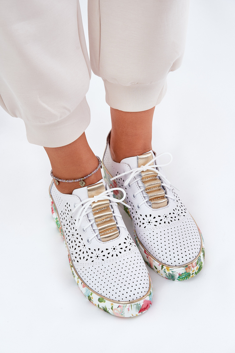 Skórzane Półbuty Damskie Na Koturnie Artiker 56C1800 Biało-Złote