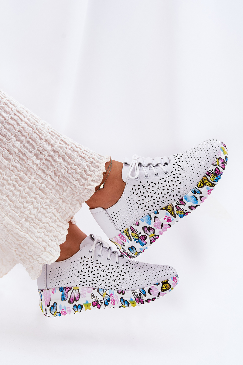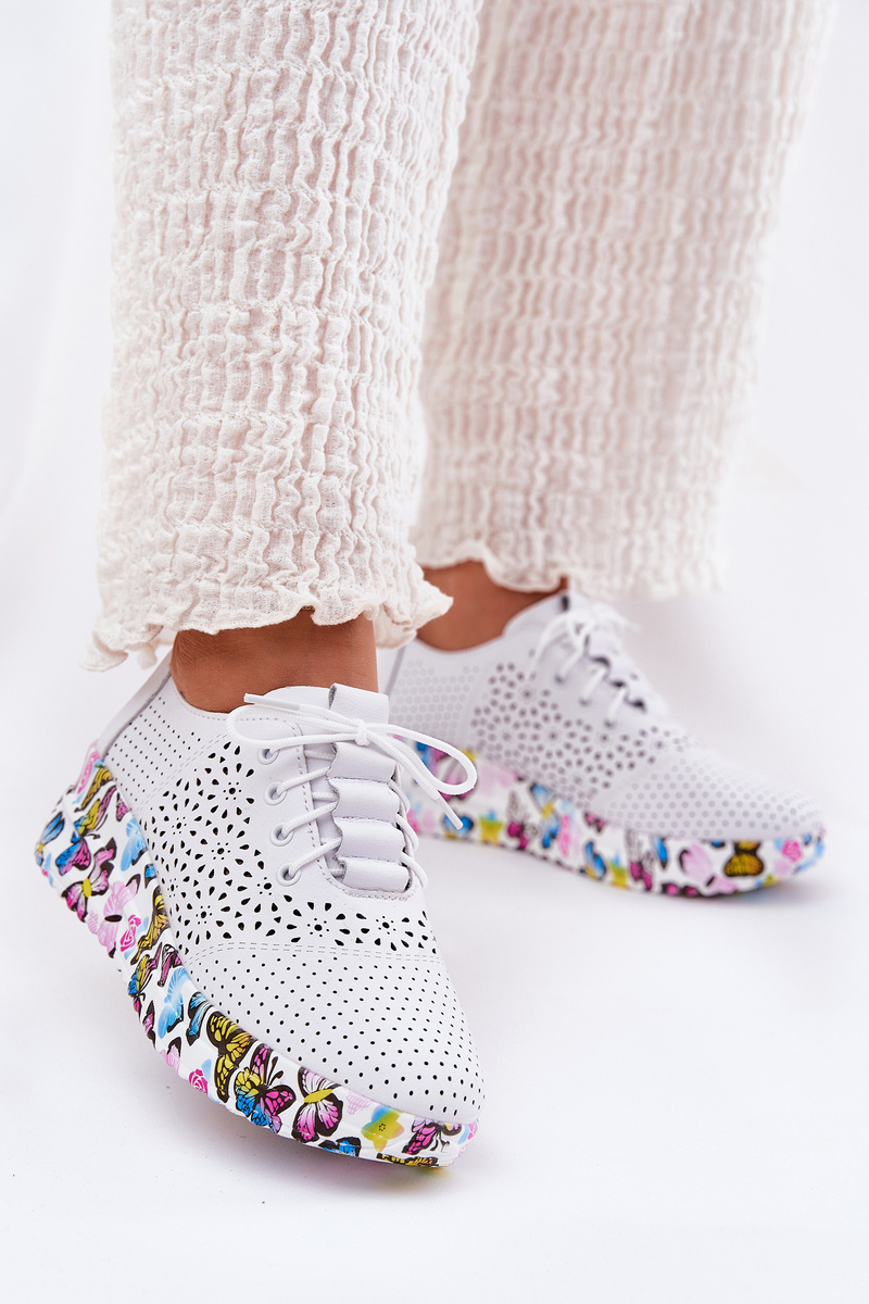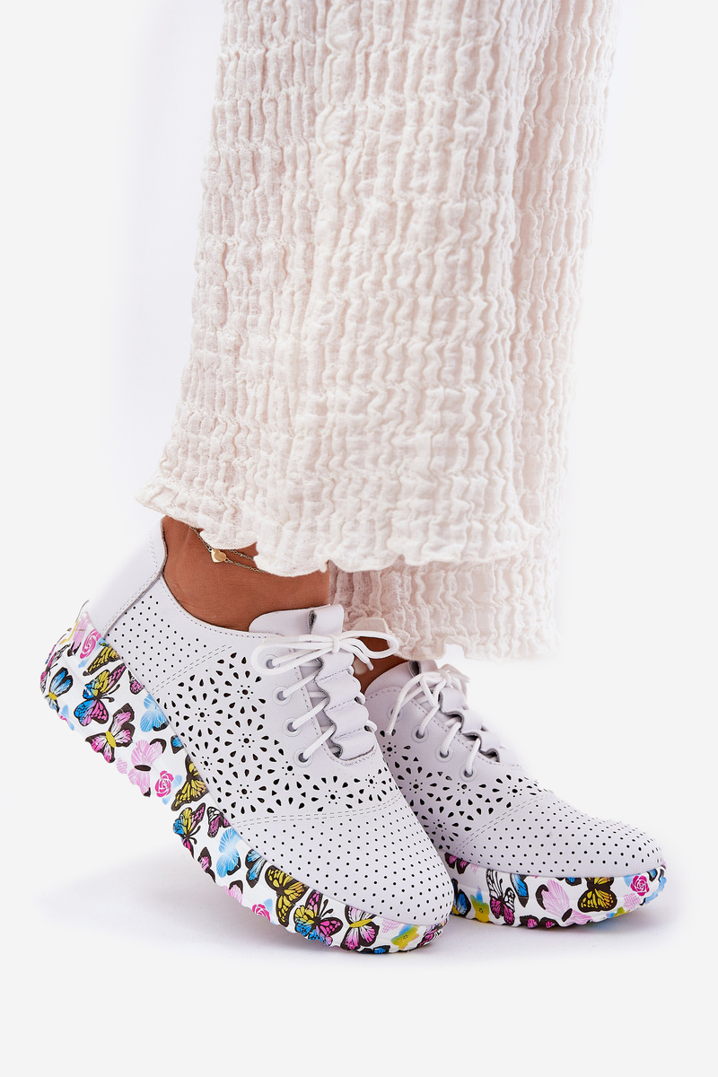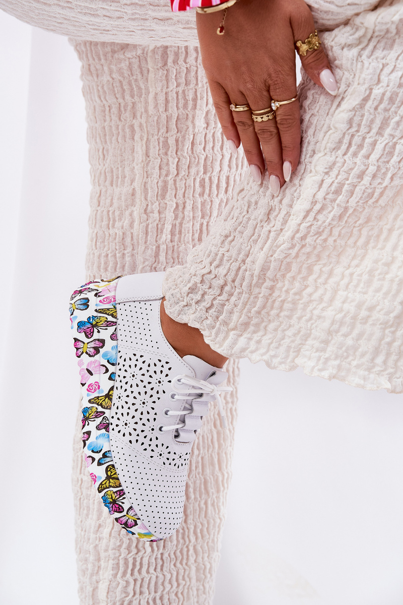 Skórzane Ażurowe Półbuty Damskie Na Koturnie Motyle Artiker 56C1618 Białe