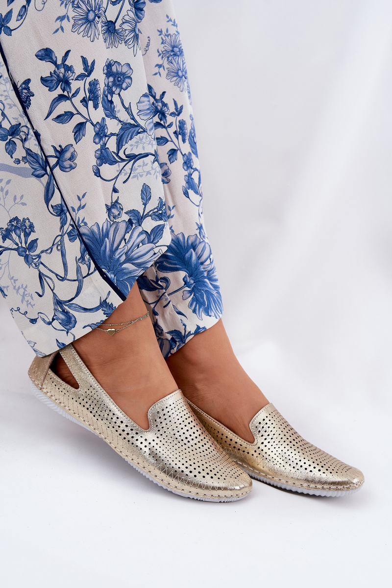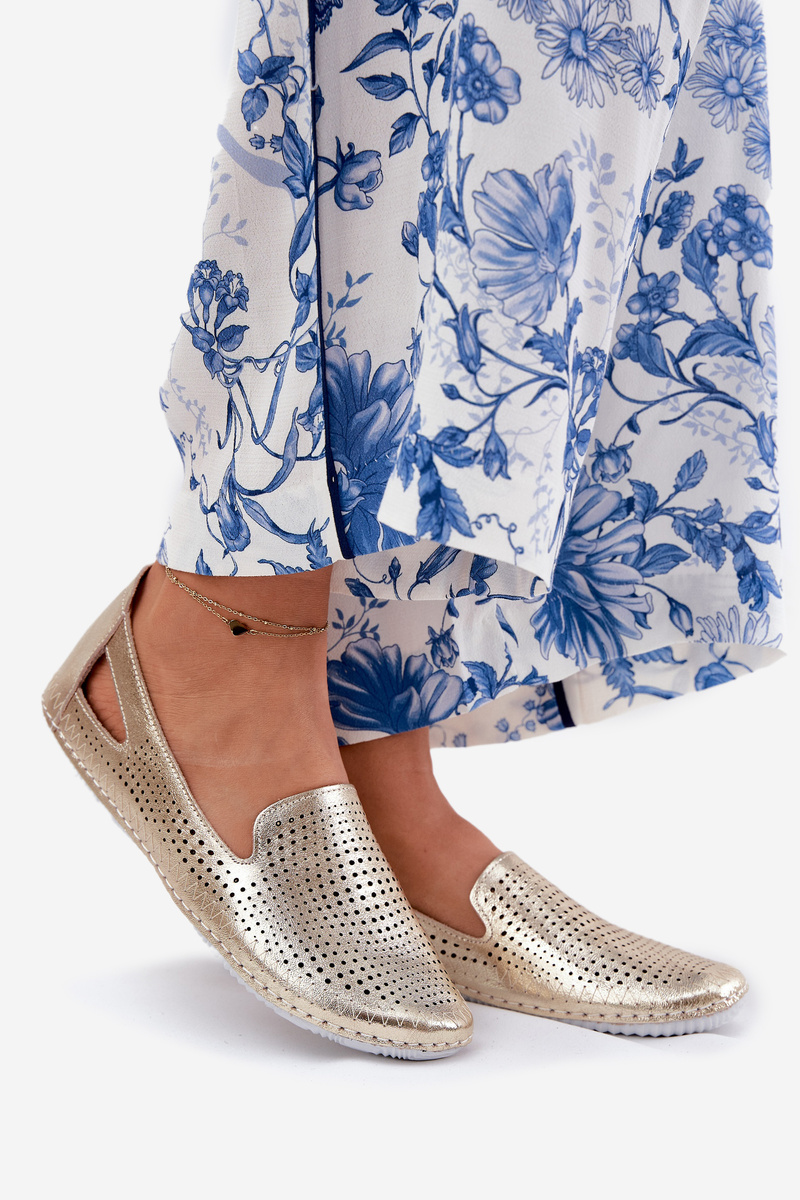 Ażurowe Baleriny Ze Skóry Naturalnej Artiker 56C2694 Złote