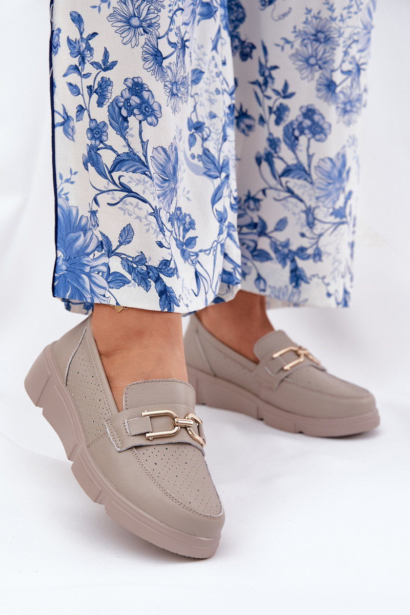 Mokasyny Damskie Skórzane Ze Złotym Detalem Vinceza 88007 Ciemnobeżowe