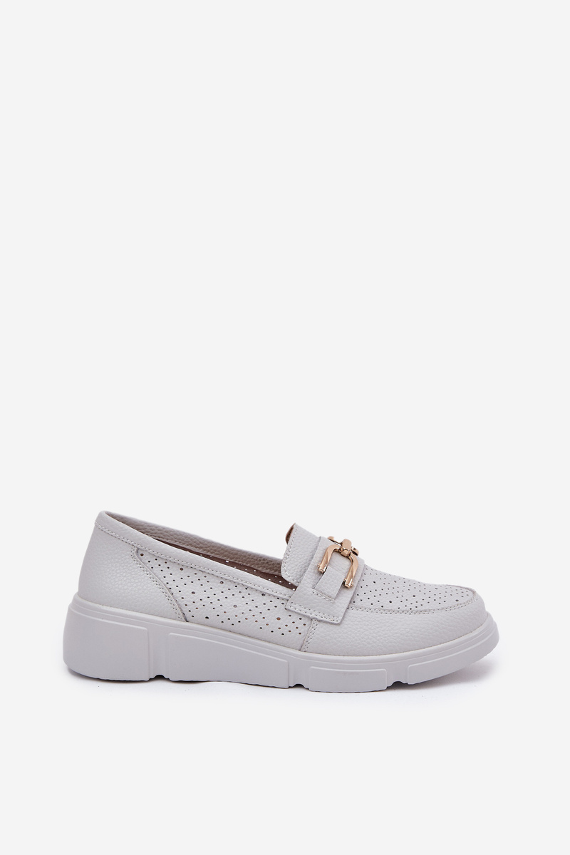 Mokasyny Damskie Skórzane Ze Złotym Detalem Vinceza 88007 Jasnoszare