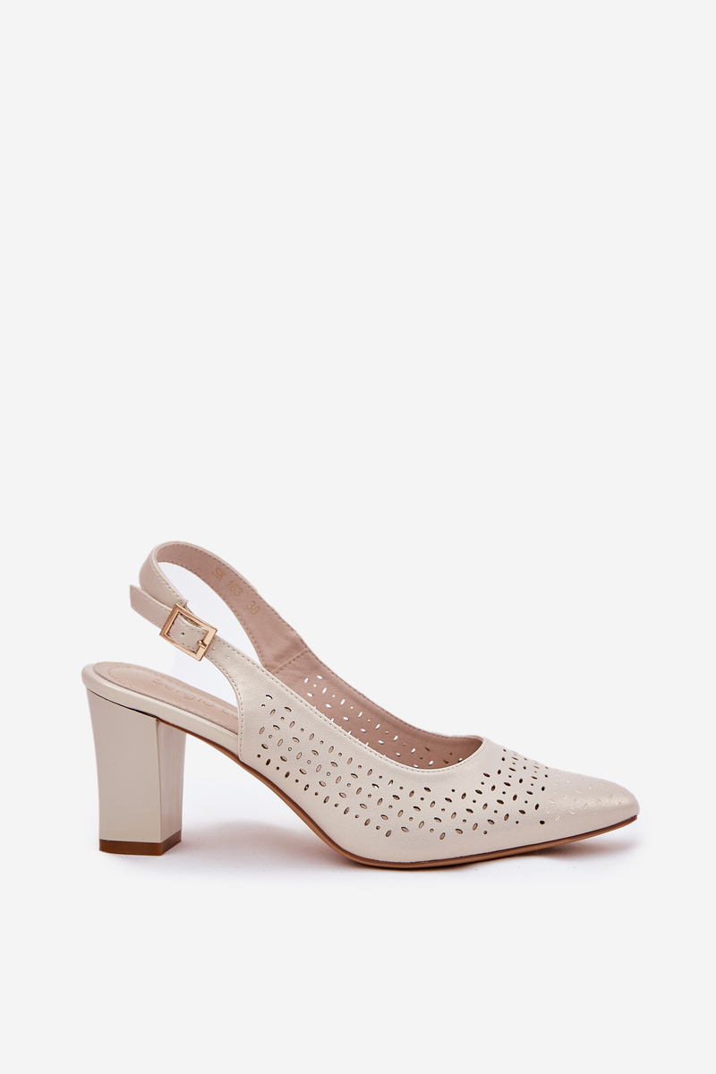 Ażurowe Sandały Ze Szpiczastymi Noskami Na Słupku Sergio Leone SK163 Perłowe