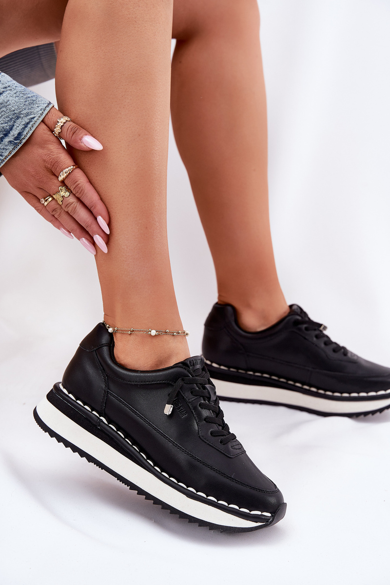 Skórzane Sneakersy Damskie Na Platformie Big Star RR274A335 Czarne