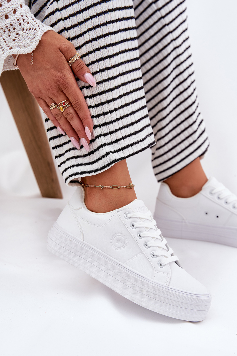 Eko Skórzane Trampki Damskie Na Platformie Big Star RR274298 Białe