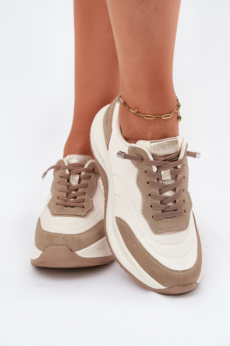 Zamszowe Sneakersy Damskie Na Platformie Big Star RR274A344 HI-POLY SYSTEM Beżowe