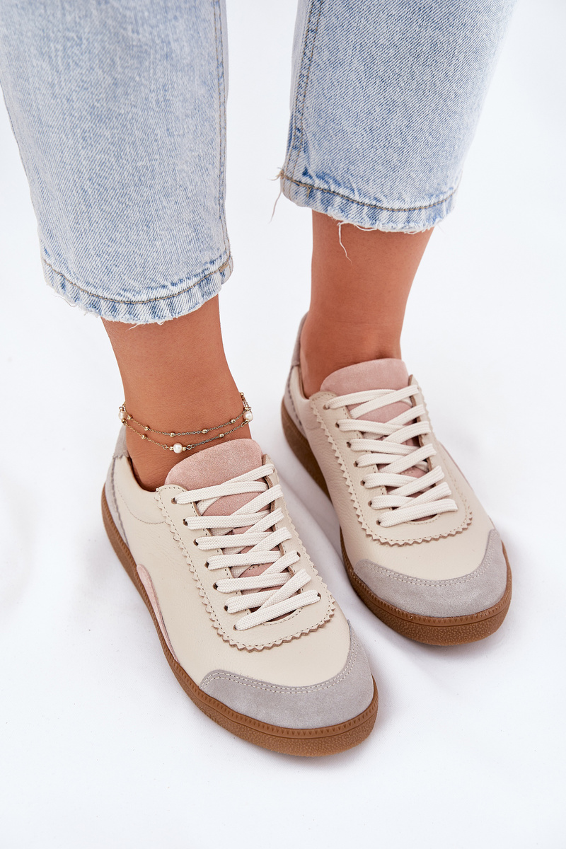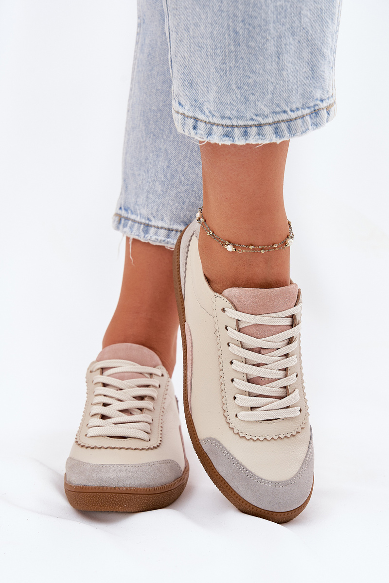 Skórzane Sneakersy Damskie Zazoo N1220 Beżowe