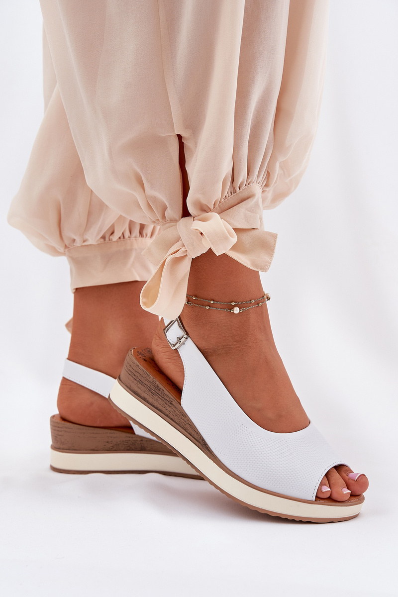 Skórzane Sandały Na Koturnie Artiker 56C2317 Białe