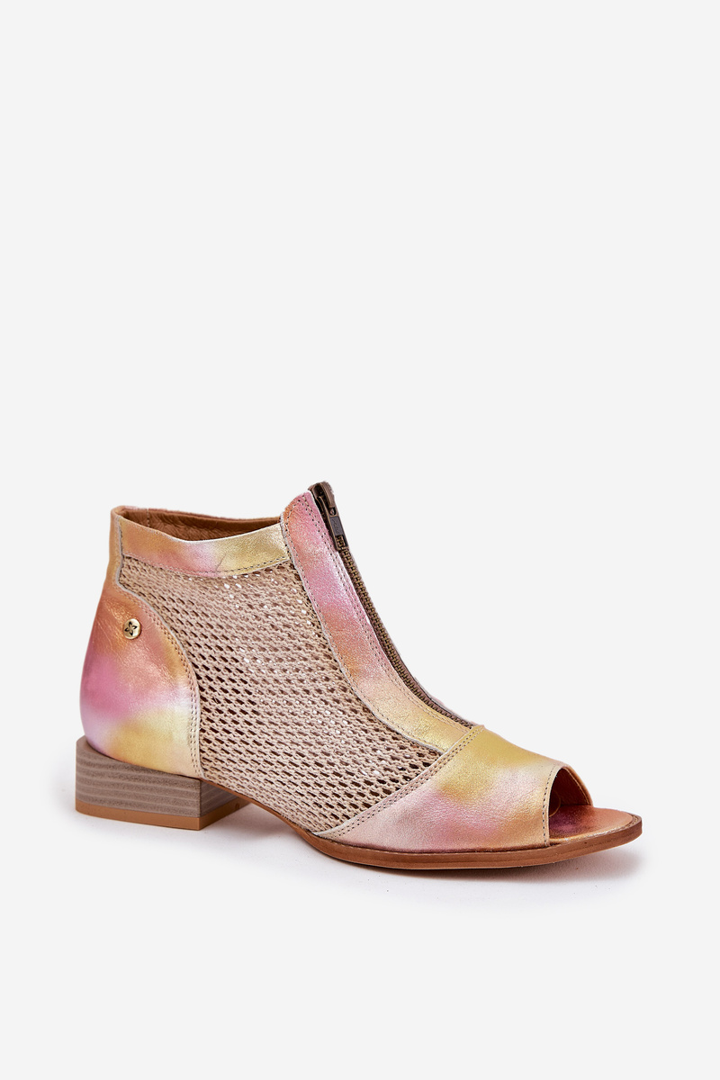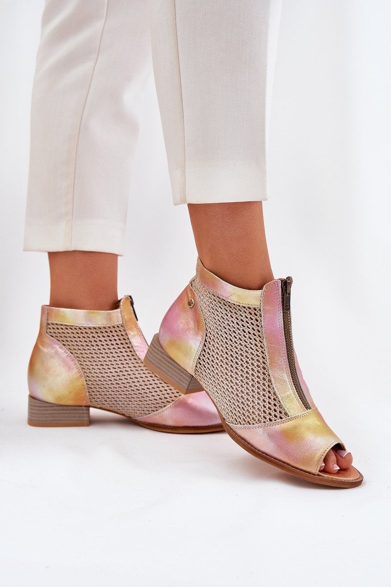 Skórzane Botki Damskie Na Płaskim Obcasie Z Odkrytymi Palcami Maciejka 06413-15 Różowo-Pomarańczowe