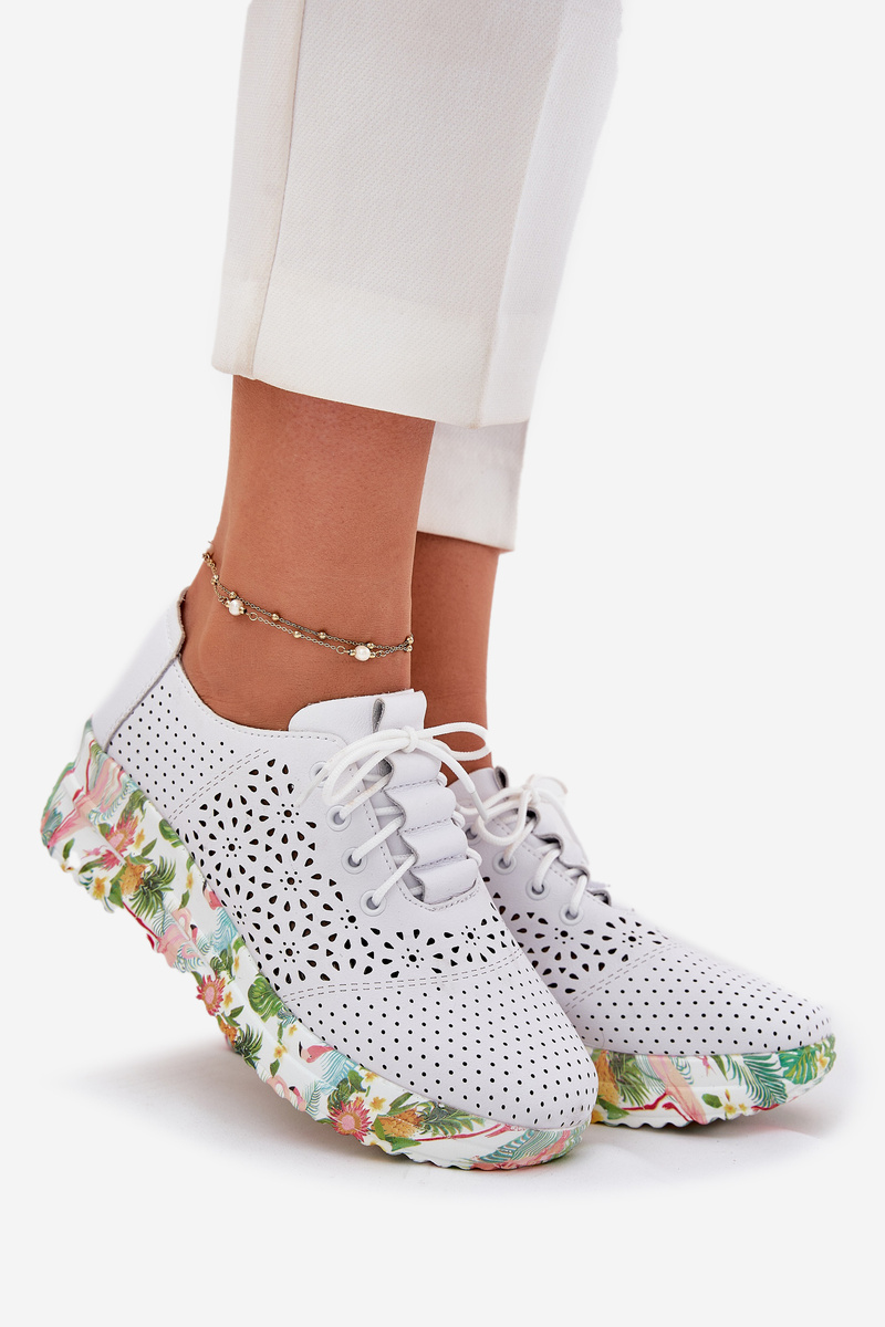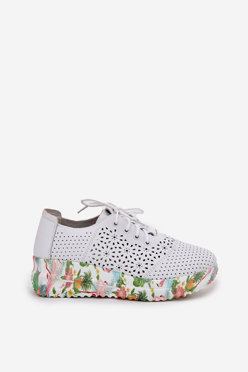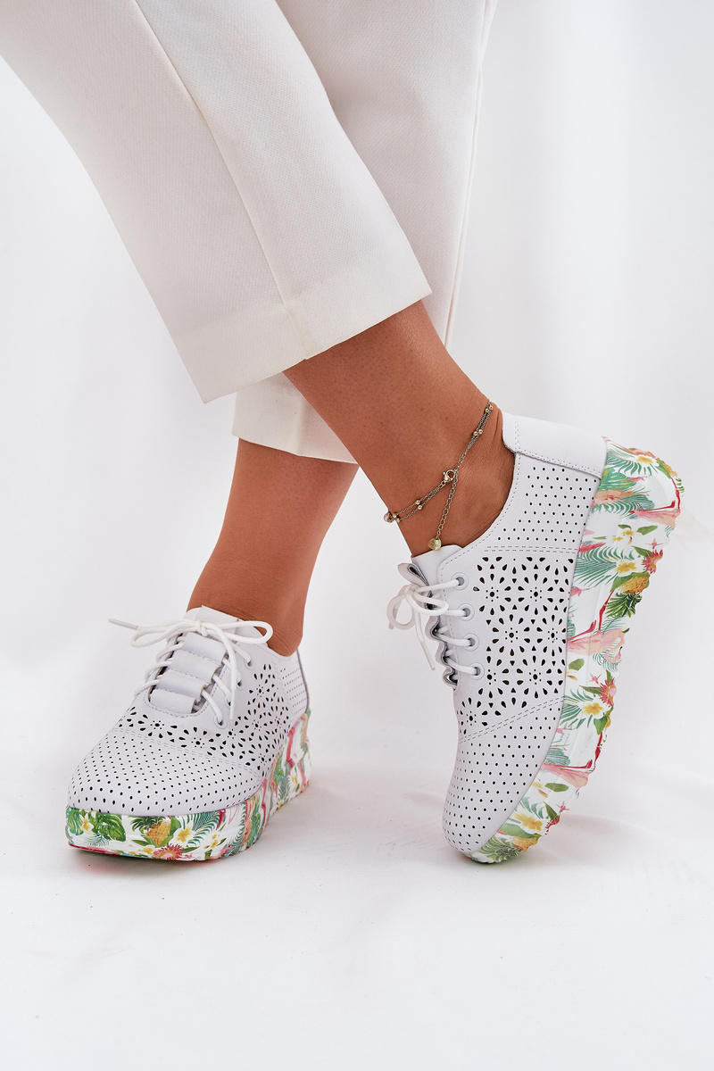 Skórzane Ażurowe Półbuty Damskie Na Koturnie Artiker 56C1532 Białe