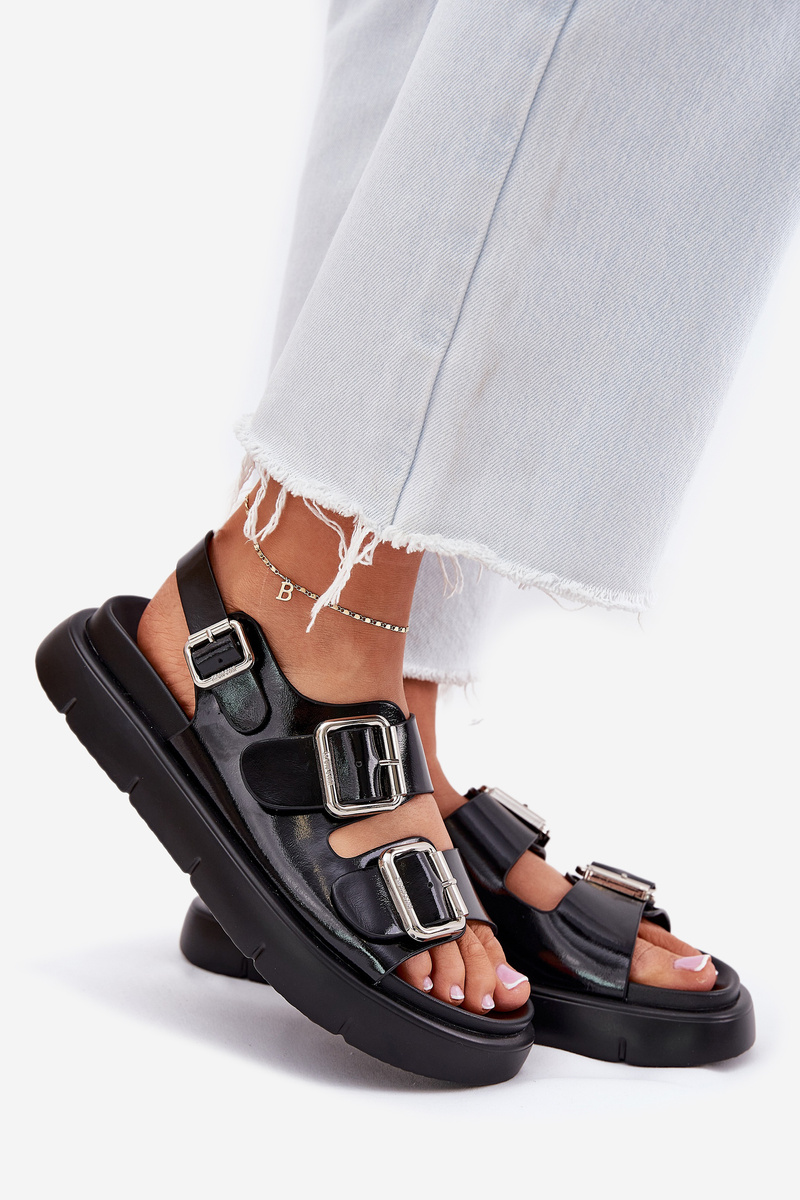 Skórzane Lakierowane Sandały Damskie Z Klamrami Big Star RR274662 Czarne