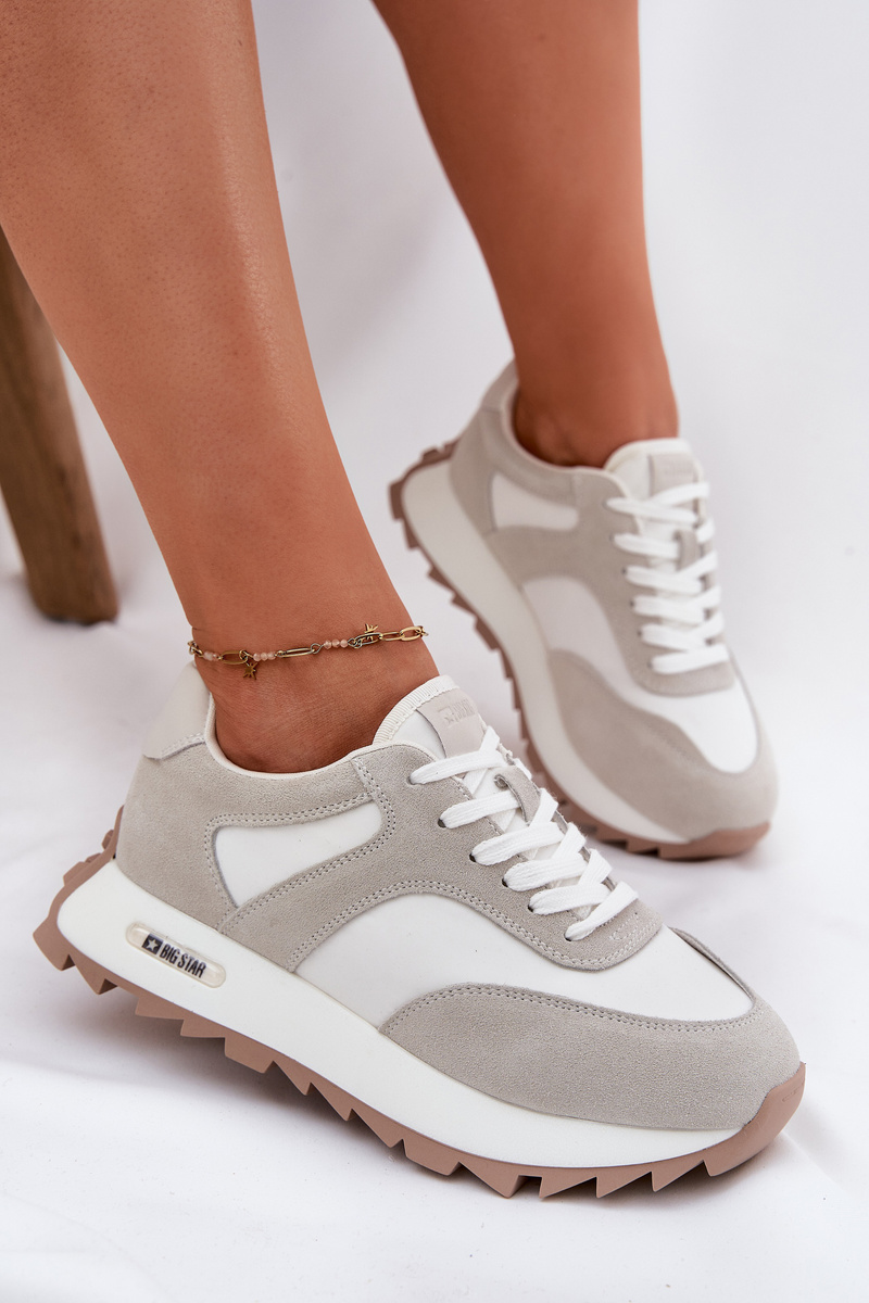 Zamszowe Sneakersy Na Platformie Damskie Big Star RR274896 HI-POLY SYSTEM Biało-Szare