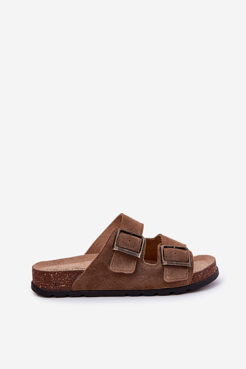 Zamszowe Klapki Z Klamrami Damskie Panto Fino RR267024 Brązowe