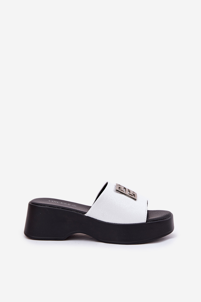 Skórzane Klapki Damskie Z Ozdobą Vinceza 79526 Białe