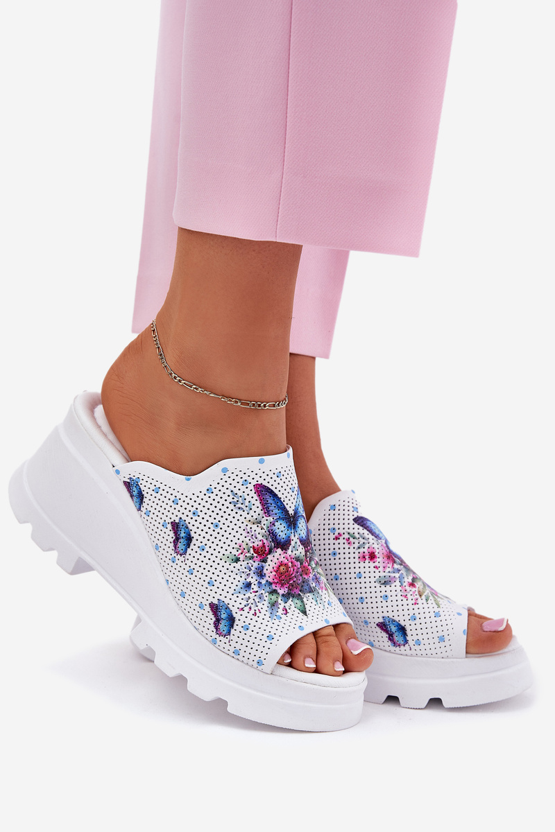 Skórzane Klapki Damskie Na Koturnie Artiker 56C0428 Białe