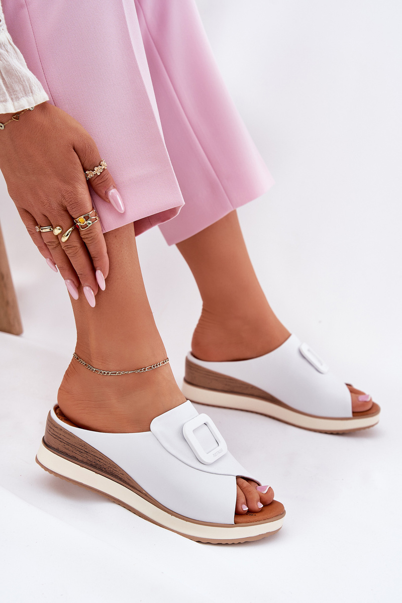 Klapki Damskie Skórzane Na Koturnie Artiker 56C2144 Białe