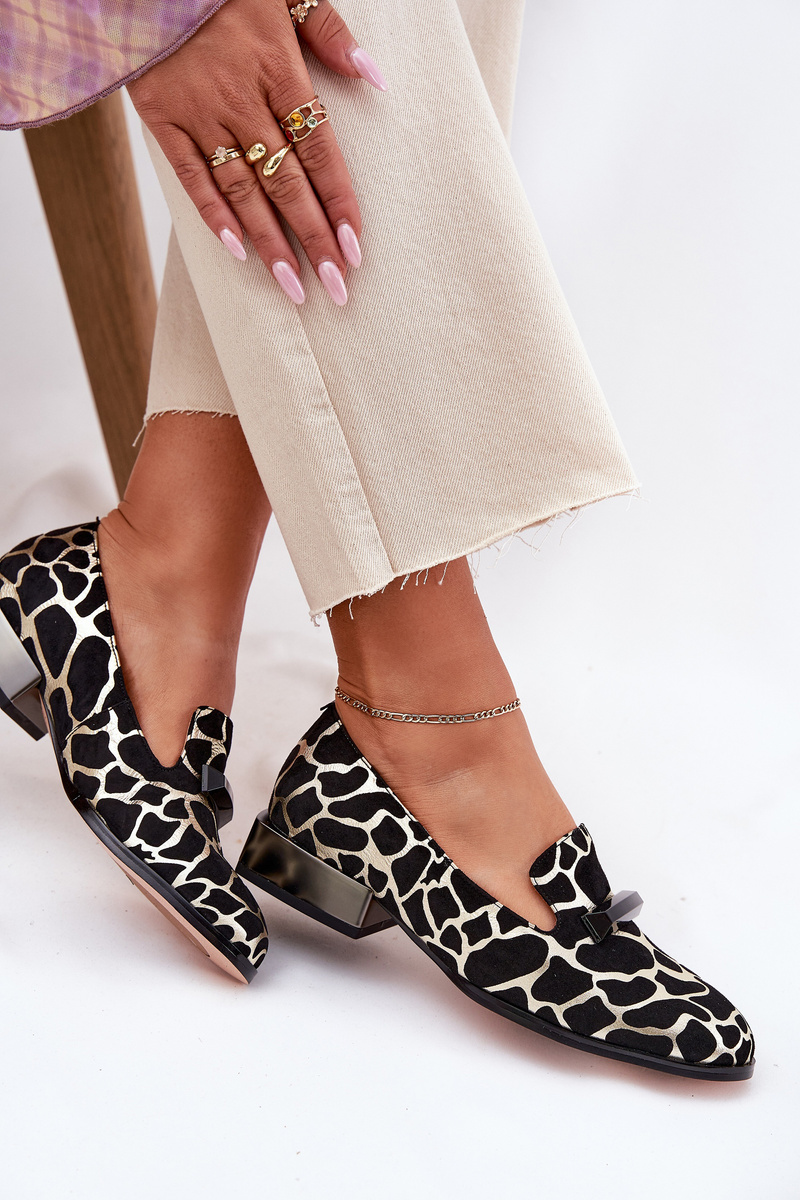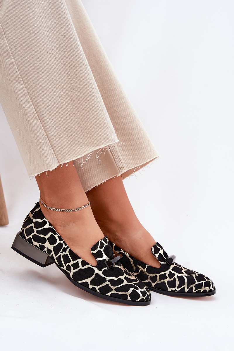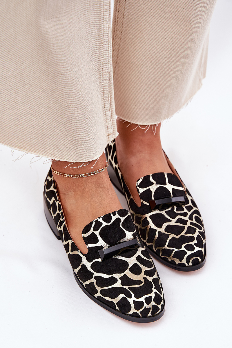 Zamszowe Półbuty Mokasyny Damskie Z Ozdobą D&A LZ51-505 Czarno-Złote