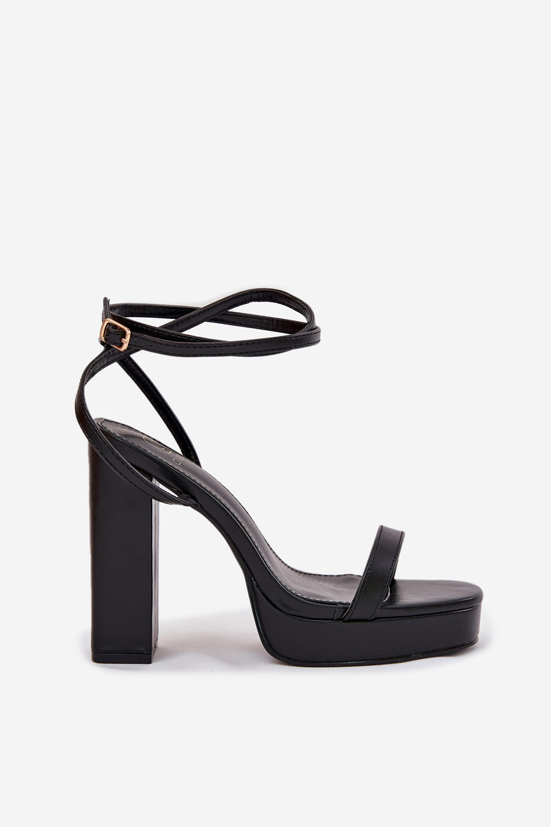 Sandały Damskie Na Słupku Z Paseczkiem Czarne Fevenne