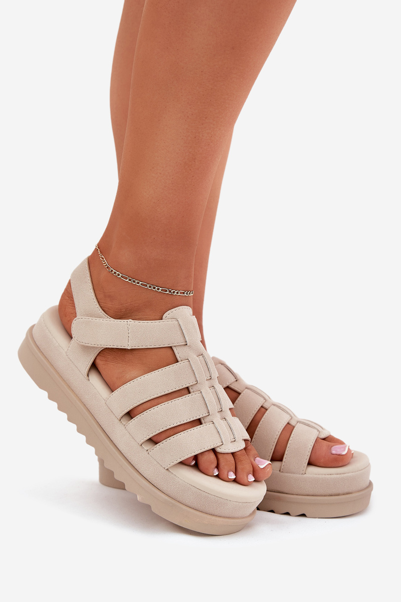Sandały Damskie Na Platformie Eko Zamszowe Beżowe Filisenia
