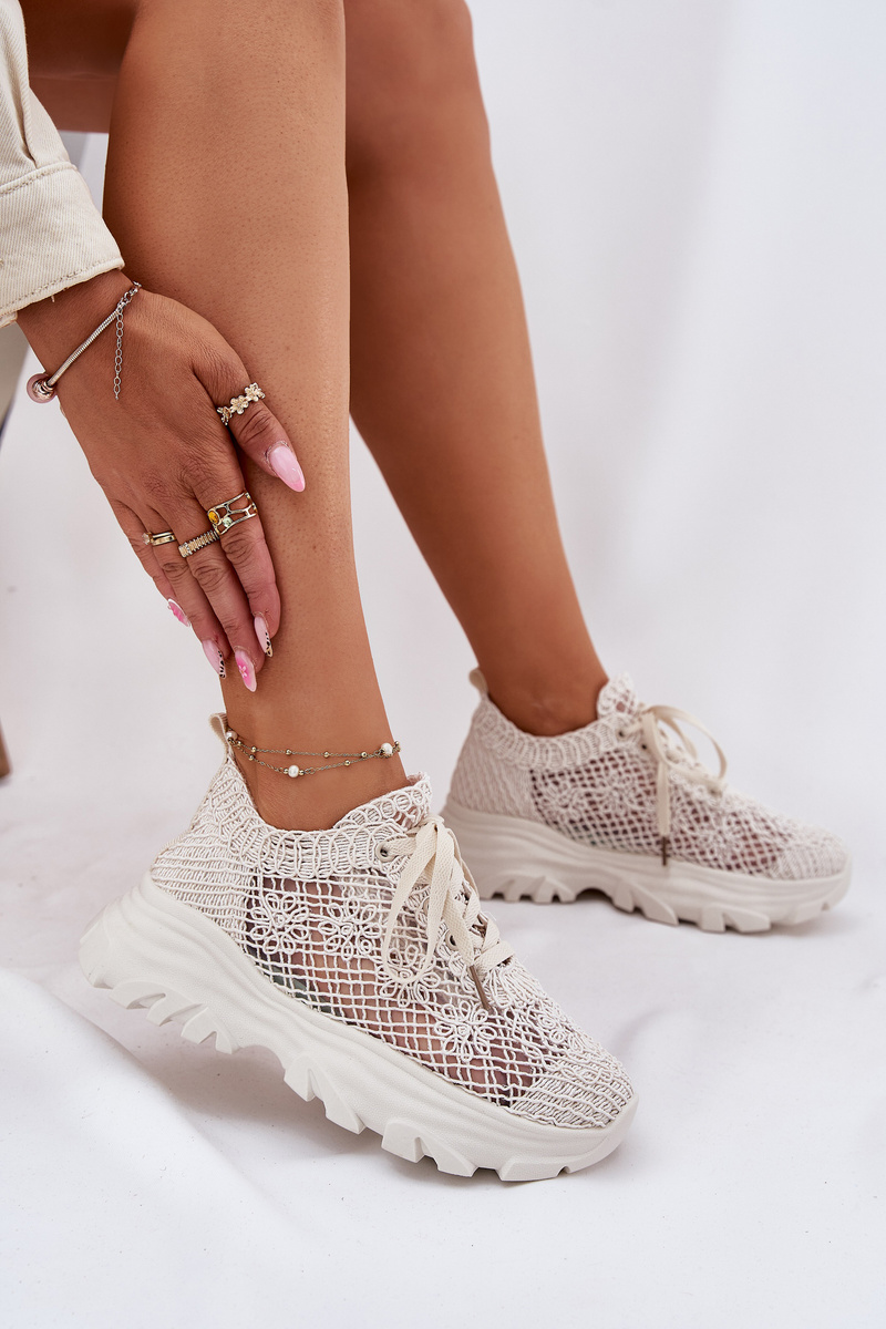 Sneakersy Damskie Z Szydełkową Cholewką Beżowe Jelhiris