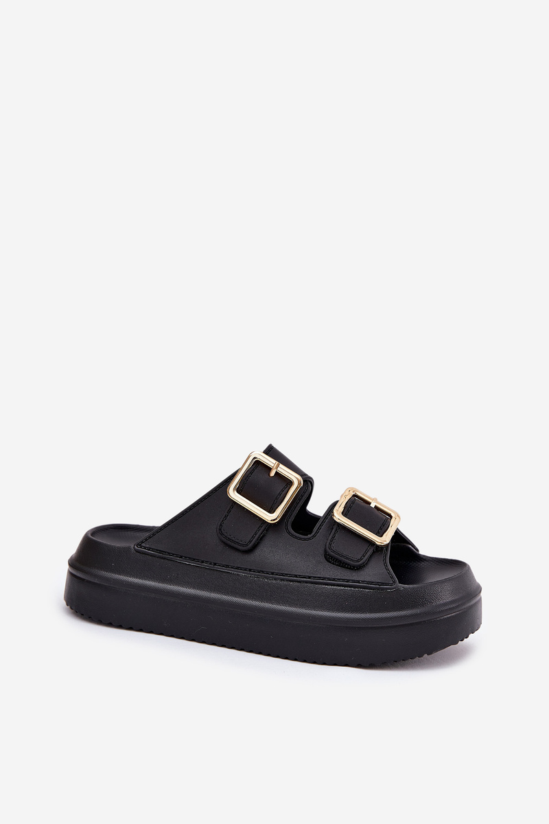 Klapki Damskie Na Platformie Ze Złotymi Klamrami Czarne Zorila