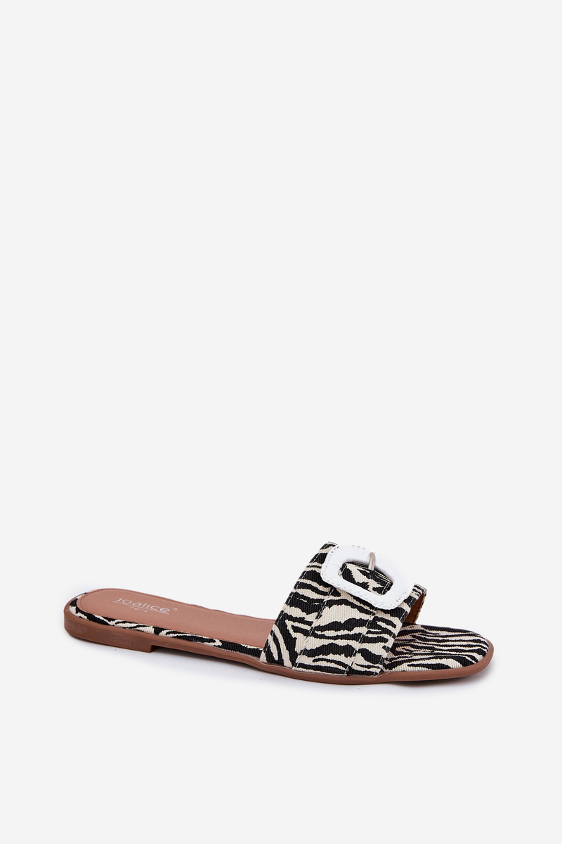 Płaskie Klapki Damskie Z Ozdobną Klamrą Zebra Clariola