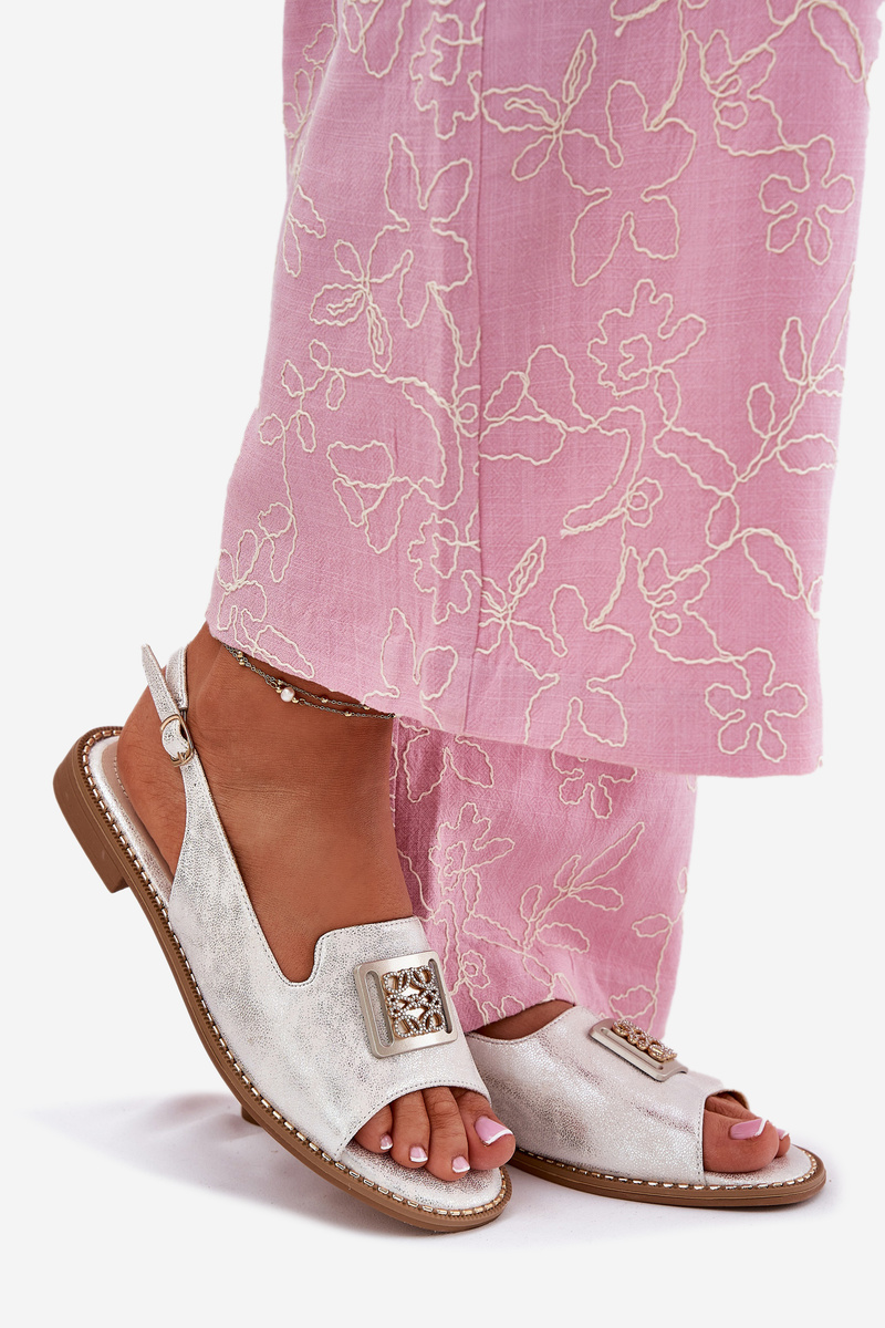 Eleganckie Sandały Damskie Na Płaskim Obcasie Z Ozdobą S.Barski KV51-082 Srebrne