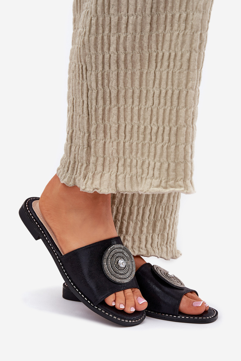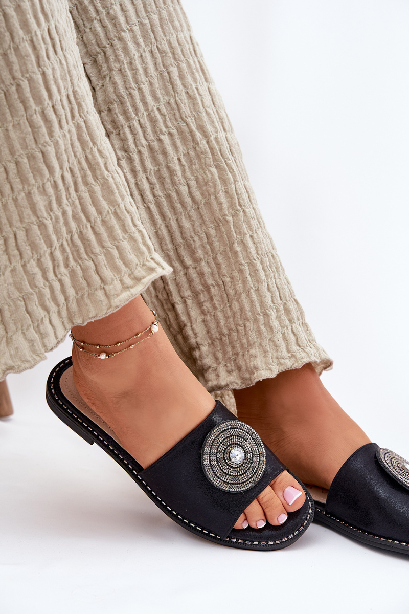 Klapki Damskie Na Płaskim Obcasie Z Ozdobą S.Barski KV51-013 Czarne