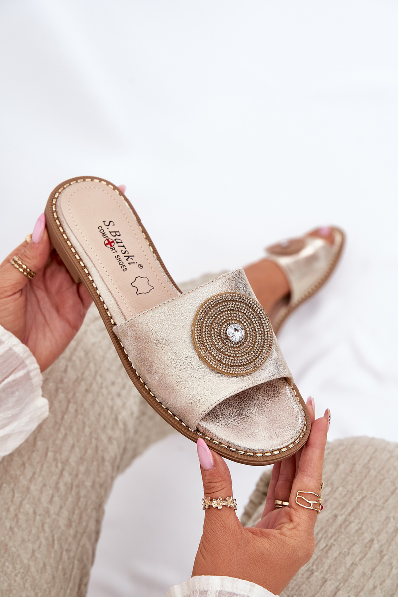 Klapki Damskie Na Płaskim Obcasie Z Ozdobą S.Barski KV51-013 Złote