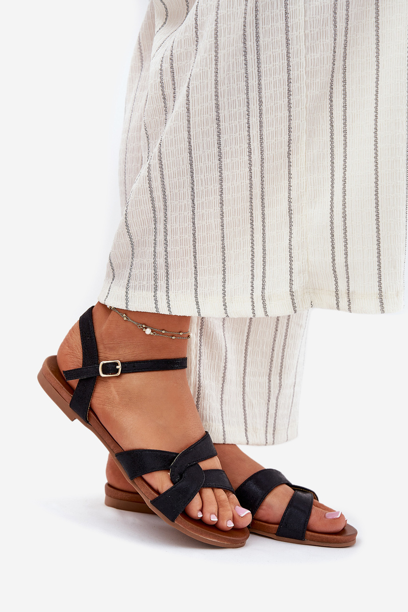 Płaskie Połyskujące Sandały Damskie S.Barski KV51-022 Czarne