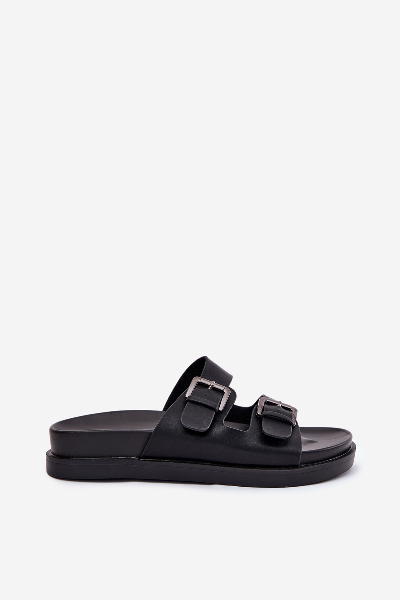 Klapki Damskie Ze Srebrnymi Klamrami Czarne Sonarea