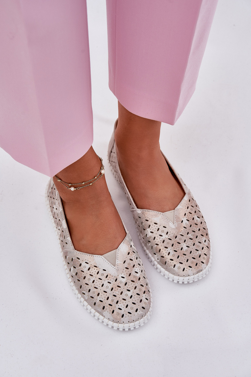 Zamszowe Ażurowe Półbuty Damskie Złoto-Szare Chulieta