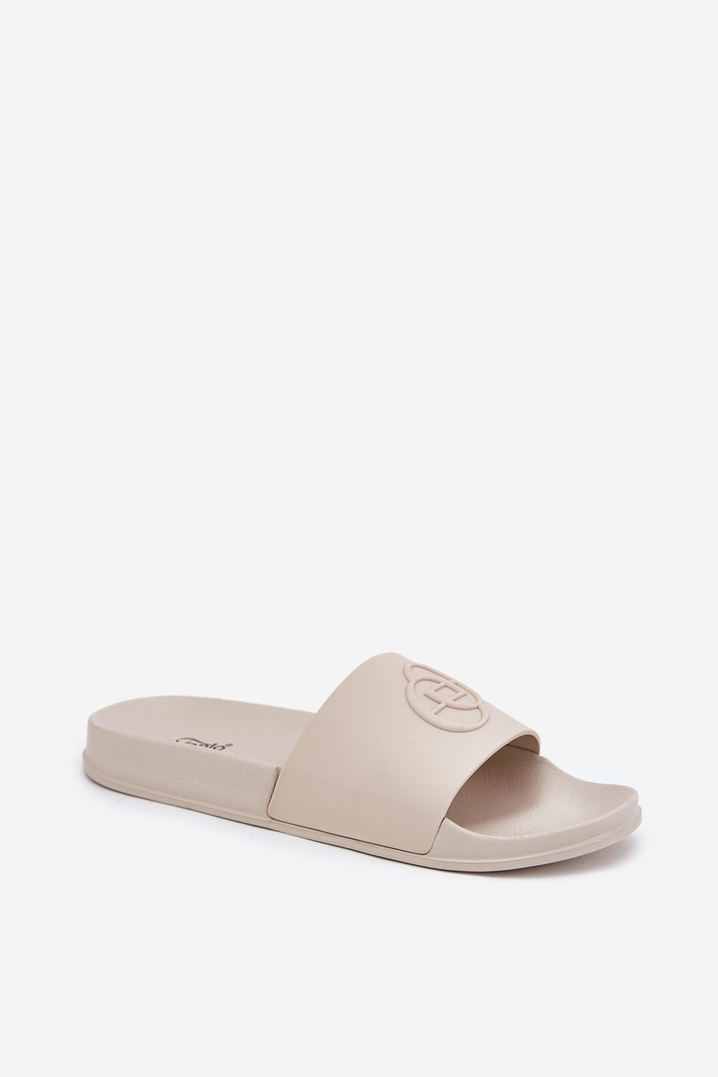 Lekkie Klapki Damskie Z Ozdobnym Tłoczeniem Beżowe Isarisa