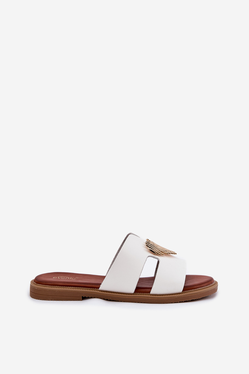 Klapki Damskie Na Płaskim Obcasie Ze Złotą Ozdobą Białe Karinma